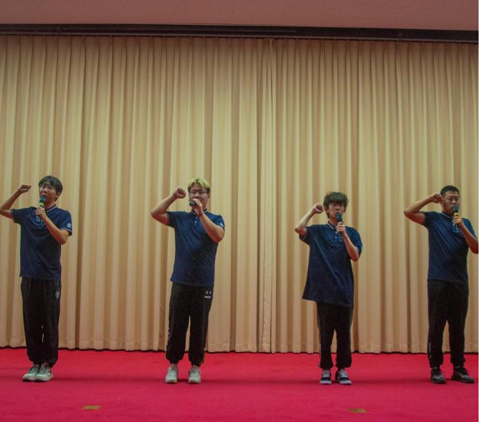 最后,由卢冠宇、陆添、张嘉伟、徐明远四位新生代表领唱,全体新生合唱五四版《错位时空》,表达了团员青年苦练本领、为党的事业接力奋斗的决心,大家一起挥舞着闪光灯,本次活动至此画上了圆满的句号。