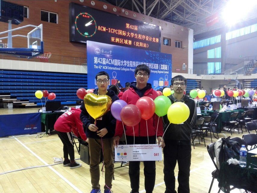 本次竞赛由ACM-ICPC亚洲区组委会主办,授权东北大学承办沈阳站的比赛。参赛阵容亦非常强大,在前期网络赛筛选的基础上,有来自国内125高校的180支队伍参加了此次现场赛。最终北京大学的“全给党”队伍以解出13题中的10题的解题数量优势捧得冠军奖杯,来自北京航空航天大学和杭州电子科技大学的队伍分货亚军和季军。av片 此次派出了两支参赛队伍,分别是由高洪杰(14281058)、王之博(14272082)、张彦潇(14281103)组成的“终末之冬”队和由王婉铃(15301158)、付恒岩(16281190)、郝敬宇(16281097)“喵之萌杀”队。此外,同一时间在由哈尔滨哈尔滨理工大学承办的第3届中国大学生程序设计竞赛(CCPC)中,av片 也派出了由赵思达(16301057)、陈炳君(16281031)、胡祖俊(17301095)三人组成的“小富即安”队参赛。两场比赛中,新老参赛队员沉着冷静、奋力发挥,最终“终末之冬”获得了一枚银奖,位于银奖前列,“小富即安”队因罚时过多与奖牌失之交臂。