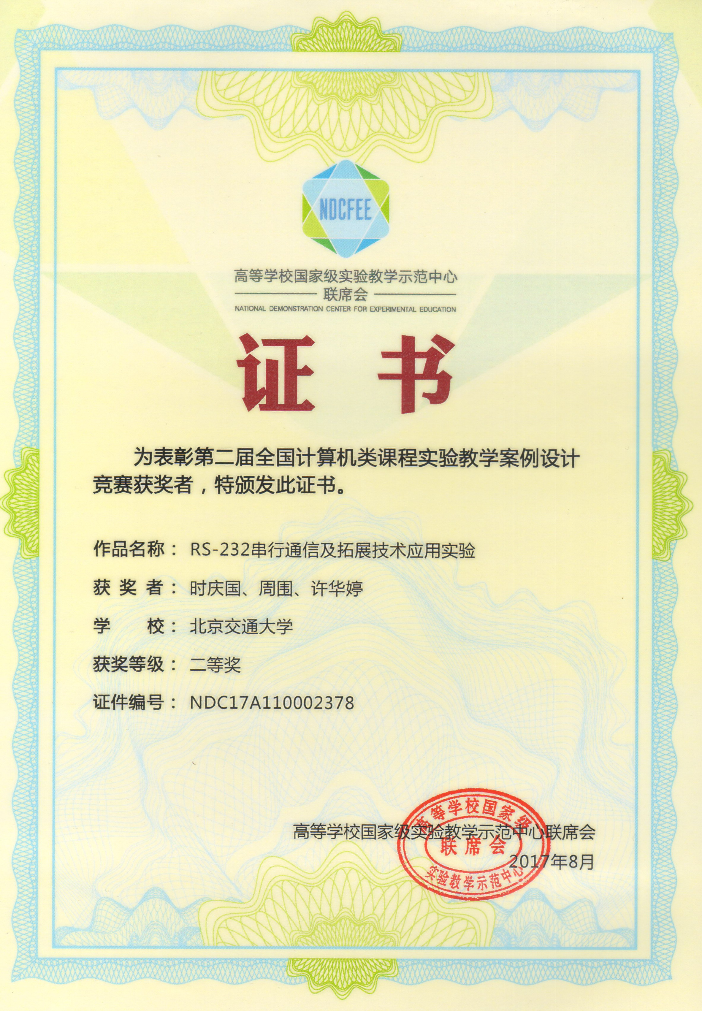 2017年11月11-12日,第十届全国高校计算机实践教学论坛暨第一届中国计算机实践教育学术会议在南京召开,有来自200余所高校的300余位教师参加。在本次学术会议上,av片 计算机基础教学基地时庆国、周围、许华婷老师开发的实验教学案例《RS-232串行通信及拓展技术应用实验》被评为二等奖。