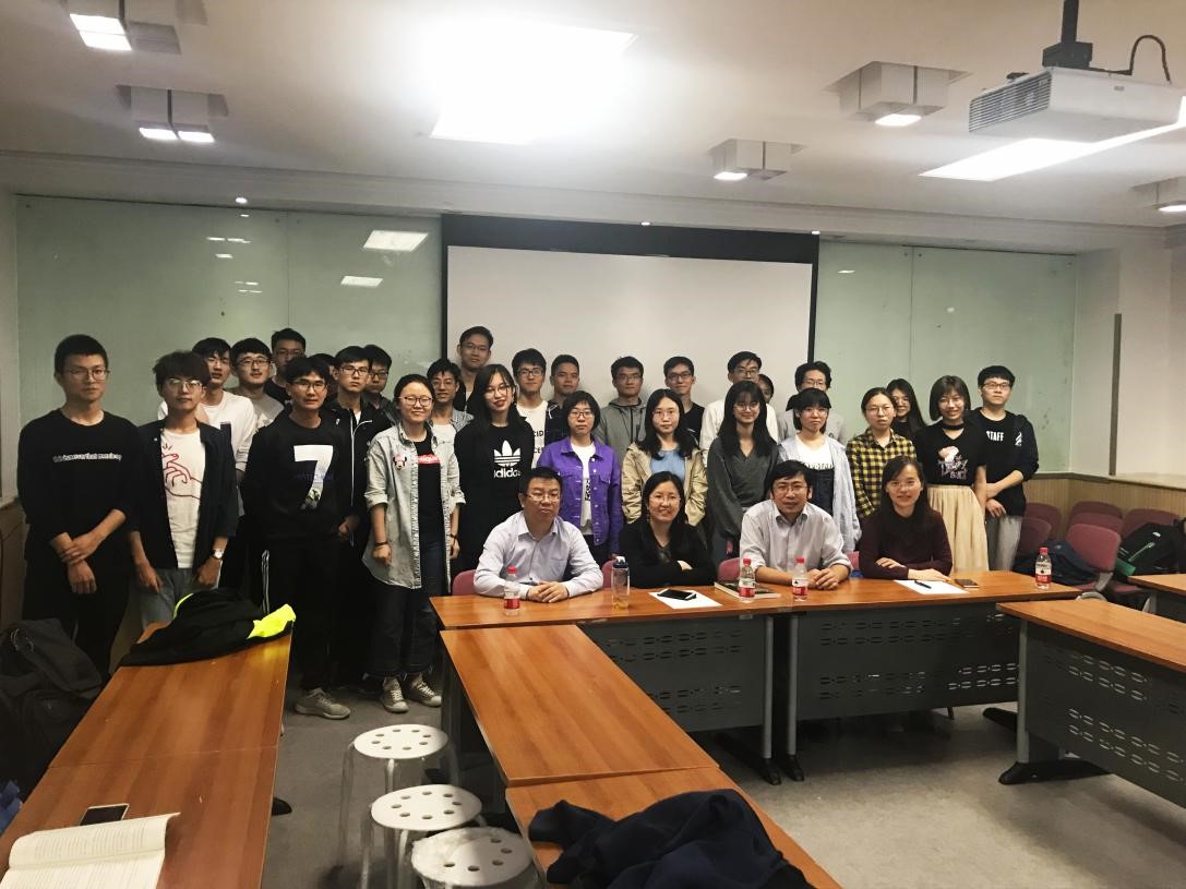 最后,IT菁英班2017级的全体同学与几位老师合影留念。菁英班的第一次沙龙活动在老师和同学们的热情中结束,所有在场的菁英班同学以百分百的热情聆听了两位老师的讲述,积极踊跃地向两位老师请教了专业知识上的疑惑和学习中遇到的困难,收获颇丰,时间有限,只觉意犹未尽。相信这样的活动也让同学们对于做学问的方法和科研精神有了一定认识,并且会将此次活动的收获内化到今后的学习中。