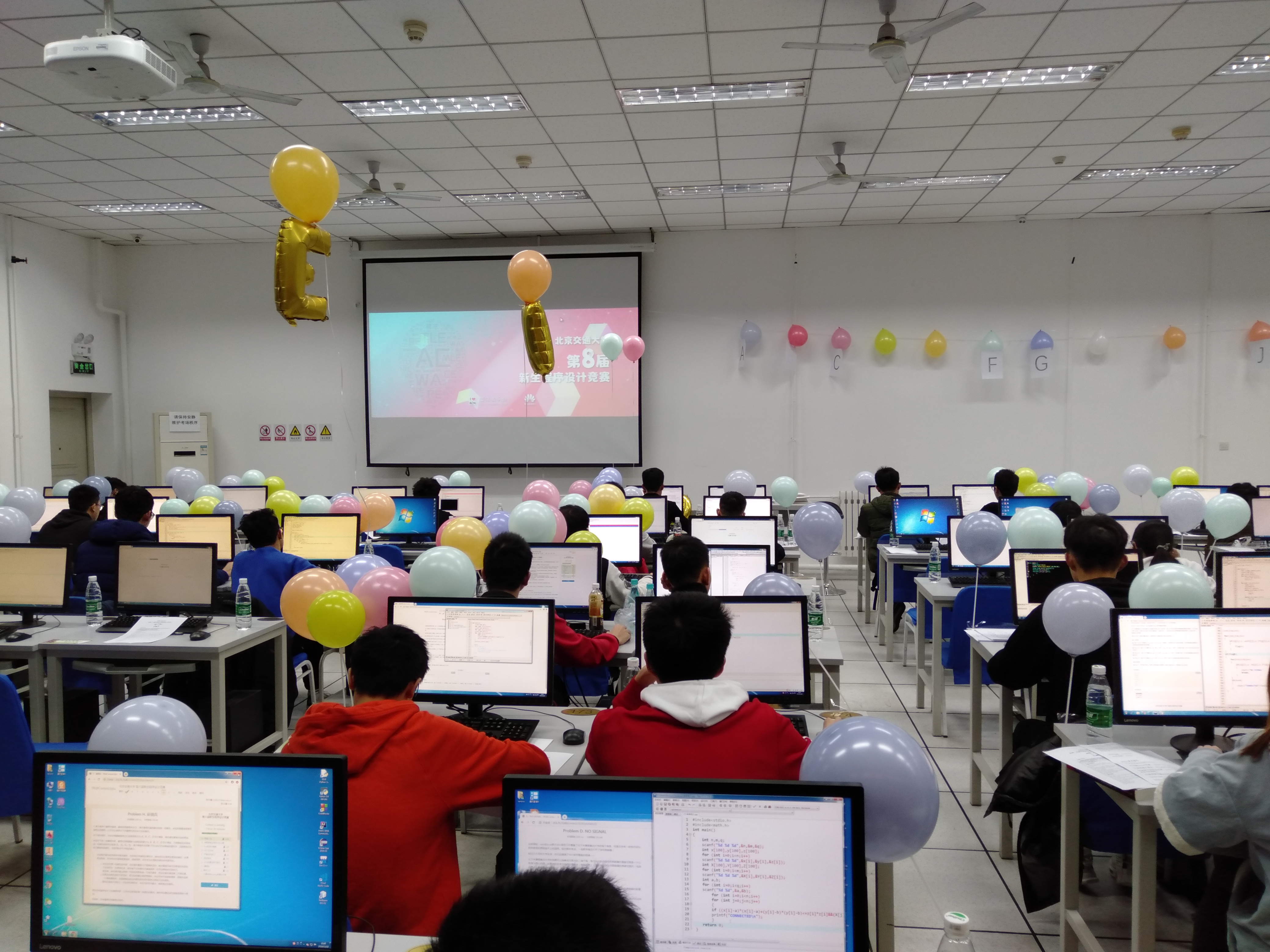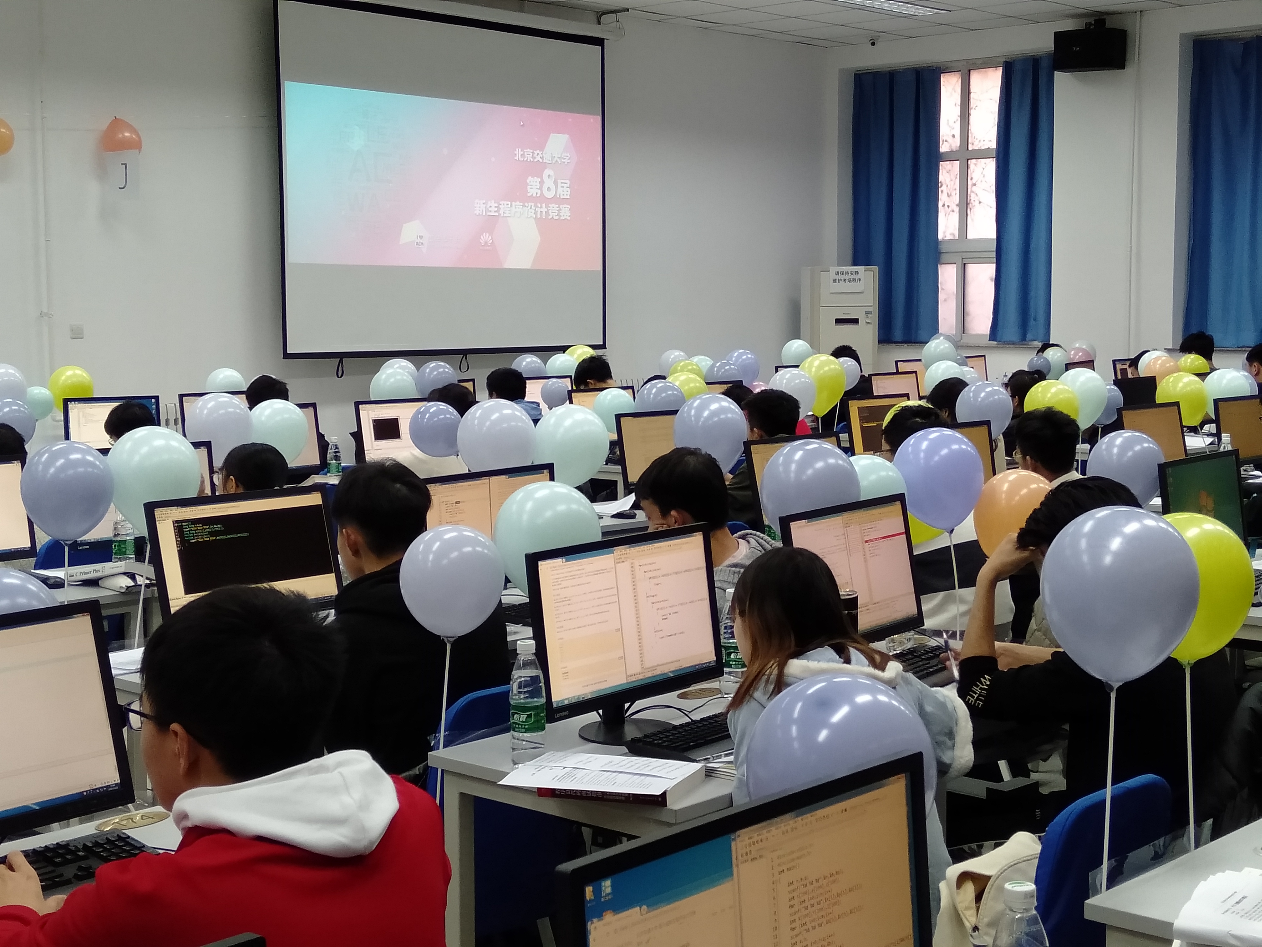 此处新生程序设计竞赛有来自全校10学院的192名学生报名参加,并有来自北航、北地大、北林、北信科等周边兄弟院校的同学参加比赛,一展才艺。