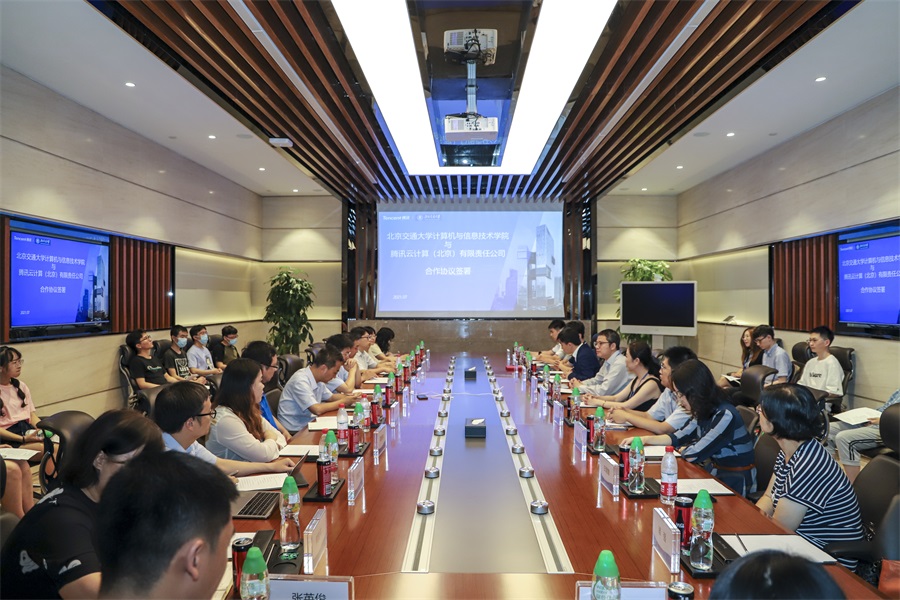 2021年7月2日下午,计算机与信息技术学院与腾讯公司产学协同育人合作协议签约仪式受邀在腾讯北京总部VIP1会议室举行。腾讯公司教育商务总经理罗盛、校企合作总监张莉,av片 副校长闫学东、本科生院副院长景云、计算机与信息技术学院院长蔡伯根、副院长熊轲等出席签约仪式。签约仪式由腾讯教育北区商务总监刘智主持,闫学东校长和罗盛总经理作为见证人,蔡伯根院长和张莉总监代表双方交换签署了合作协议。