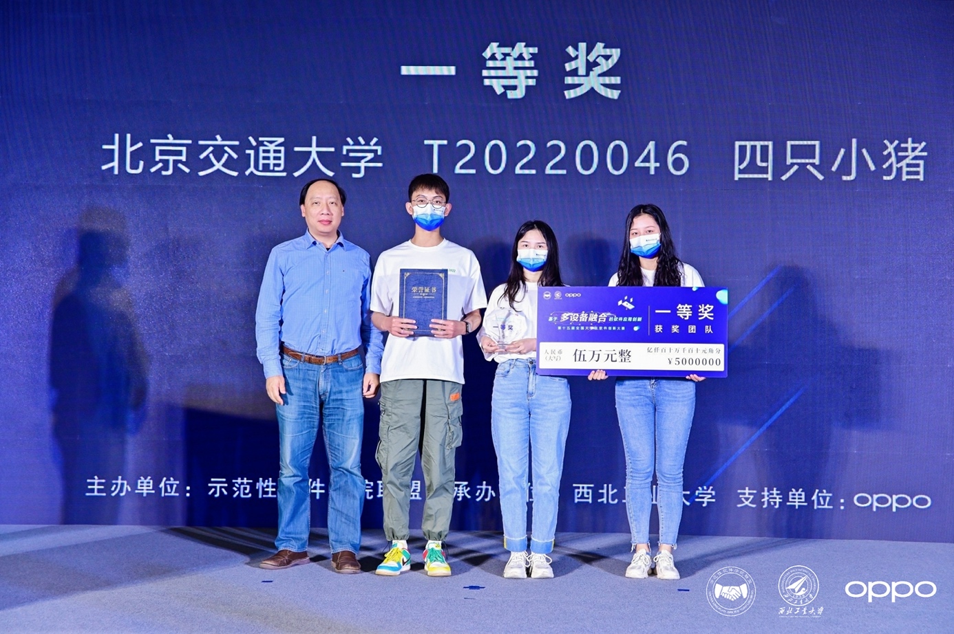 计算机与信息技术学院信息安全系卢思洋老师指导的“四只小猪”队,凭借作品《CareU:健康关怀小助手》,经过一天的路演与答辩环节,夺得竞赛一等奖和最佳人气奖。