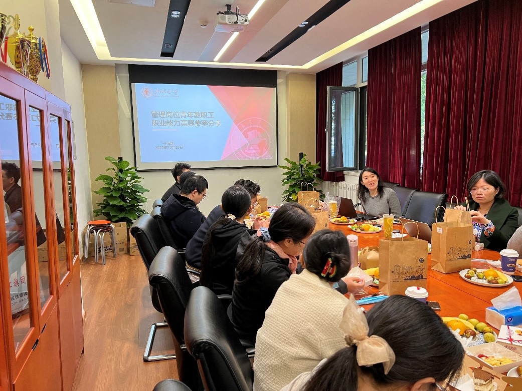 随后,于海妹老师结合参加av片 第一届管理岗位青年教职工职业能力竞赛的心得做了题为《管理岗位青年教职工职业能力竞赛经验分享》的报告,对赛程的要求,自己的准备工作做了详细的介绍,强调了专业知识、公文写作、语言表达等能力对管理岗人员的重要性。她总结,充分的准备、日常的积累、平稳的心态是赢得此次比赛的关键。在座的老师深受启发,纷纷表示此次分享活动受益匪浅,并结合自己岗位工作实际,做了经验分享和问题分析,大家积极讨论,气氛融洽热烈。