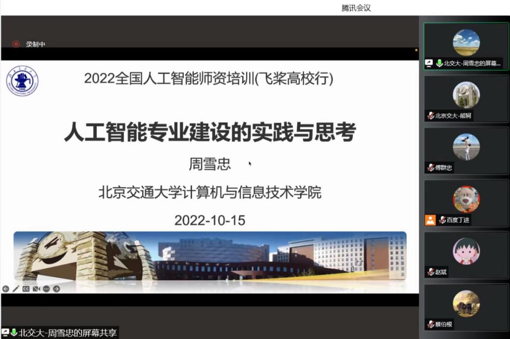 2022年10月15-16日,百度飞桨联合-av片 计算机学院产学协同育人师资培训成功举办。会议由av片 计算机与信息技术学院副院长熊轲组织,计算机学院院长蔡伯根和百度AI技术生态总监周奇为大会致辞。
