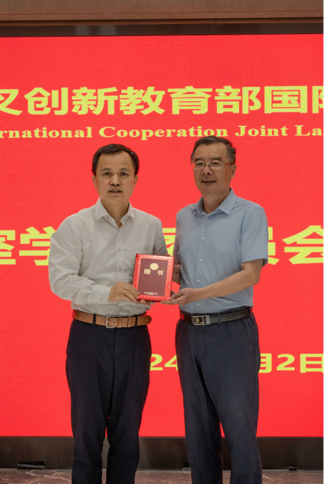 在国际合作中取得的成果,期望联合实验室有突破性的转化成果。随后,关忠良副校长与学院贾卓生书记共同为联合实验室揭牌,并亲自为学术委员会的每一位成员颁发聘书。