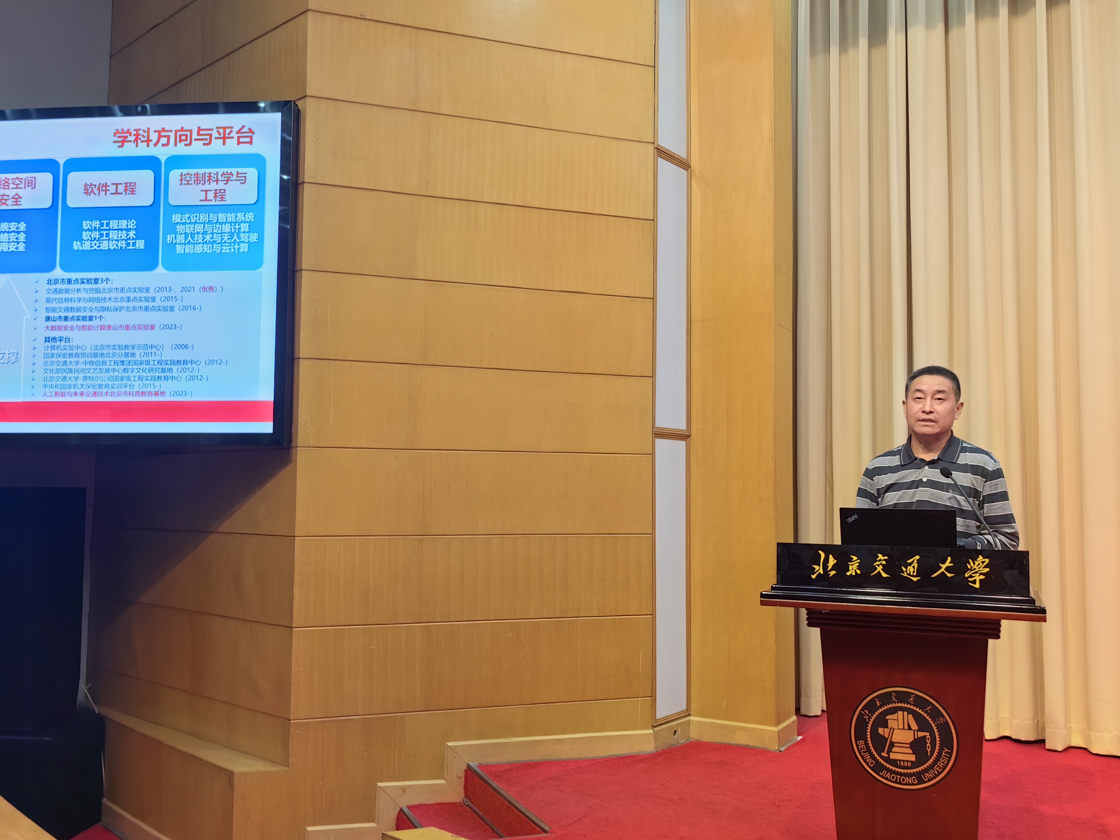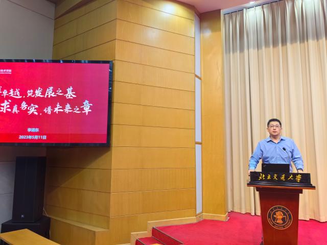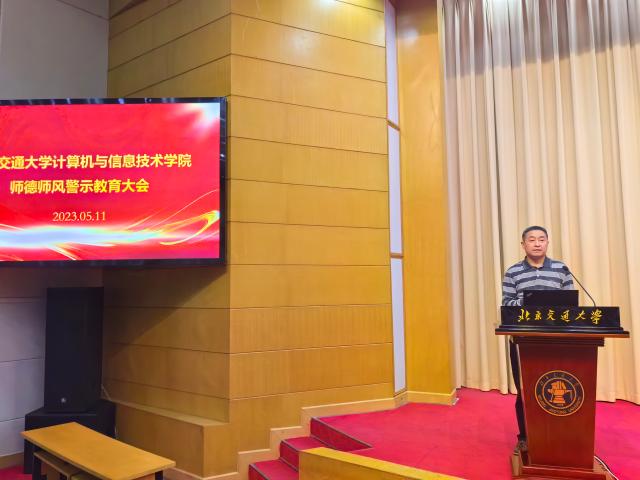 2023年5月11日下午,计算机学院在科学会堂召开全院大会,面向全体教职工汇报2022年学院整体工作、科技创新工作开展情况,并进行师德师风教育培训。此次大会由学院党委书记贾卓生主持,院长蔡伯根、副院长李浥东主讲。
