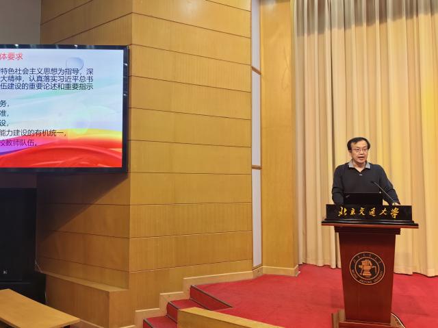 大会第二部分进行师德师风教育培训。首先,由贾卓生书记解读学校相关政策文件。贾书记指出,学院始终坚持师德第一标准,建立健全师德师风建设长效机制,对师德违规问题“零容忍”,要求全体教师会后认真学习《北京交通大学教师思想政治和师德师风建设学习读本》,自觉维护教师职业形象,提振师道尊严。之后,由蔡伯根院长结合《教育部公开曝光第十一批7起违反教师职业行为十项准则典型案例》、《教育部公开曝光高校教师违反教师职业行为十项准则典型案例集》、《教育部公开曝光第十二批7起违反教师职业行为十项准则典型案例》等材料,面向全体教师开展师德师风警示教育。蔡院长要求各位教师持续深入落实高校教师职业行为十项准则,知准则、守底线,共同构筑学院良好的师德师风氛围。