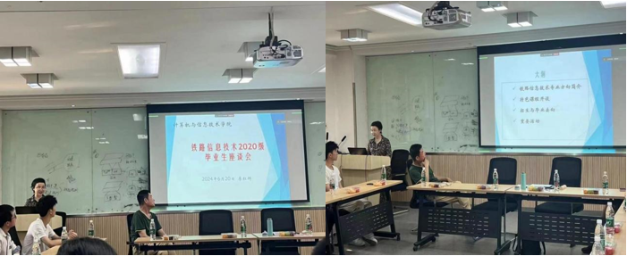 计算机科学与技术学院网络管理研究中心于2024年6月20日在第九教学楼307B举行了计算机科学与技术(铁路信息技术)专业2020级学生毕业座谈会。会议由铁路信息技术专业责任教授李红辉老师主持,2020级铁信班20多名同学和部分铁信专业教师参加了本次会议。