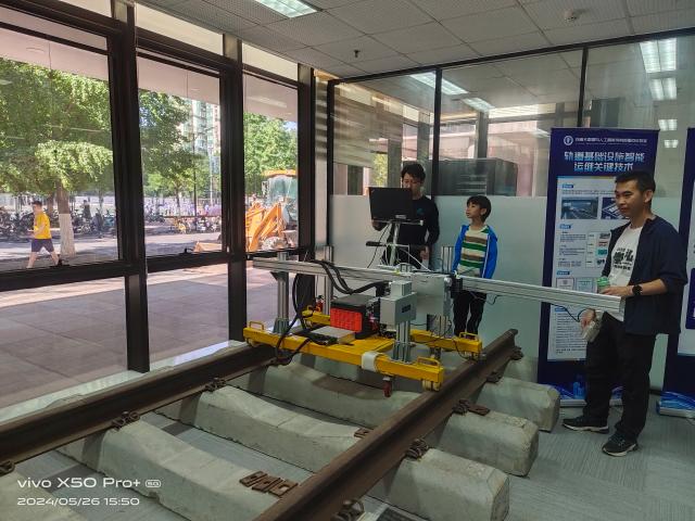 6月1日儿童节当天,科普教育基地教师和大学生志愿者赴丰台区少年宫,携手丰台科协,和北理工、北邮、北信科等大学实验室一同开展了“智慧未来,童心探秘”的“6·1HIGH翻天”系列活动。科普基地展示了“AI+轨道运维”项目。这个面向大学生的实验项目,让中小学的孩子们初步了解了高铁轨道智能运维中涉及到的传感器、巡检系统、AI病害识别等科学知识,让孩子们沉浸在虚拟工作场景中,流连忘返。项目与少年宫科创项目紧密相连,开阔了孩子们的视野,萌发了创新和科技探索的种子。