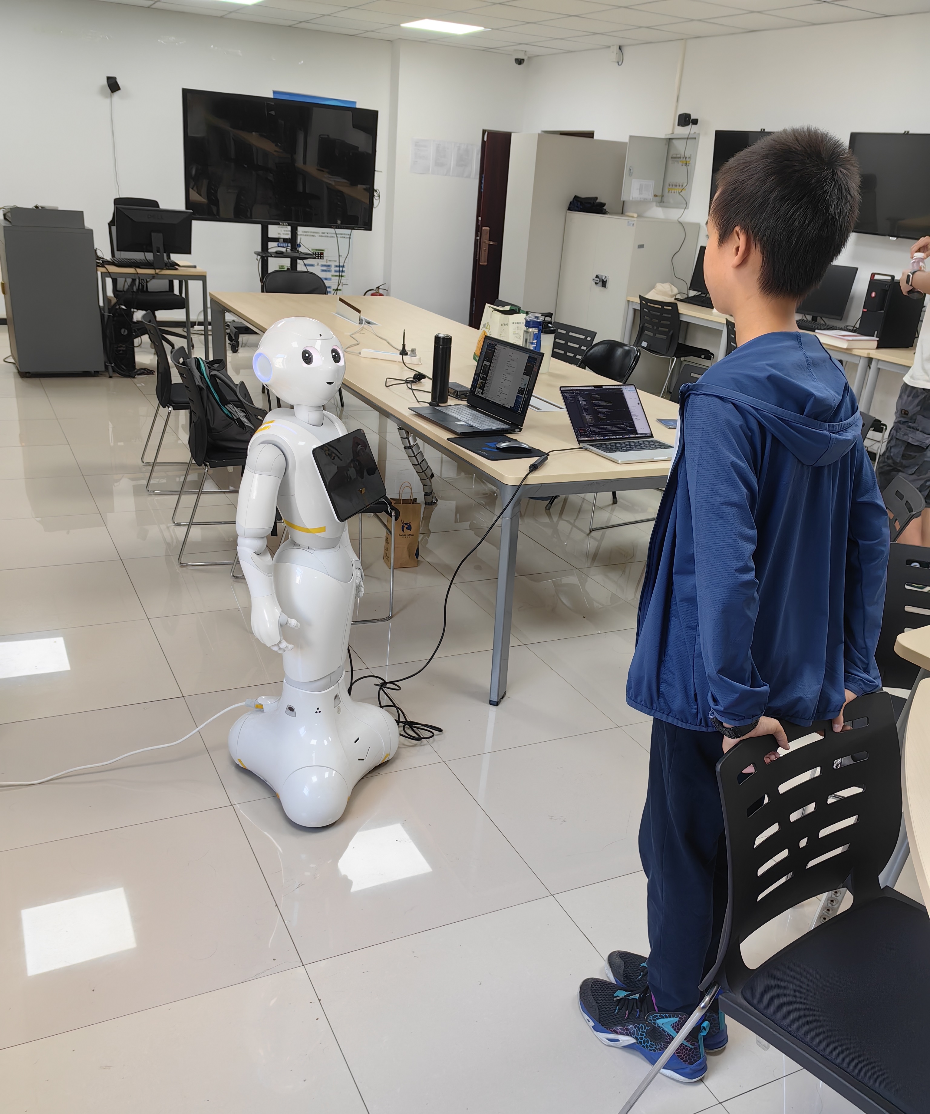 人工智能创新实验室是北京交通大学计算机科学与技术学院一个特色实验室,承担专业实验教学和科研任务。科技周期间,实验室(九教2层北206)开展了两个AI特色项目:基于脑机接口的生成式音乐创作,懂医学知识的Pepper机器人,受到同学们的欢迎。