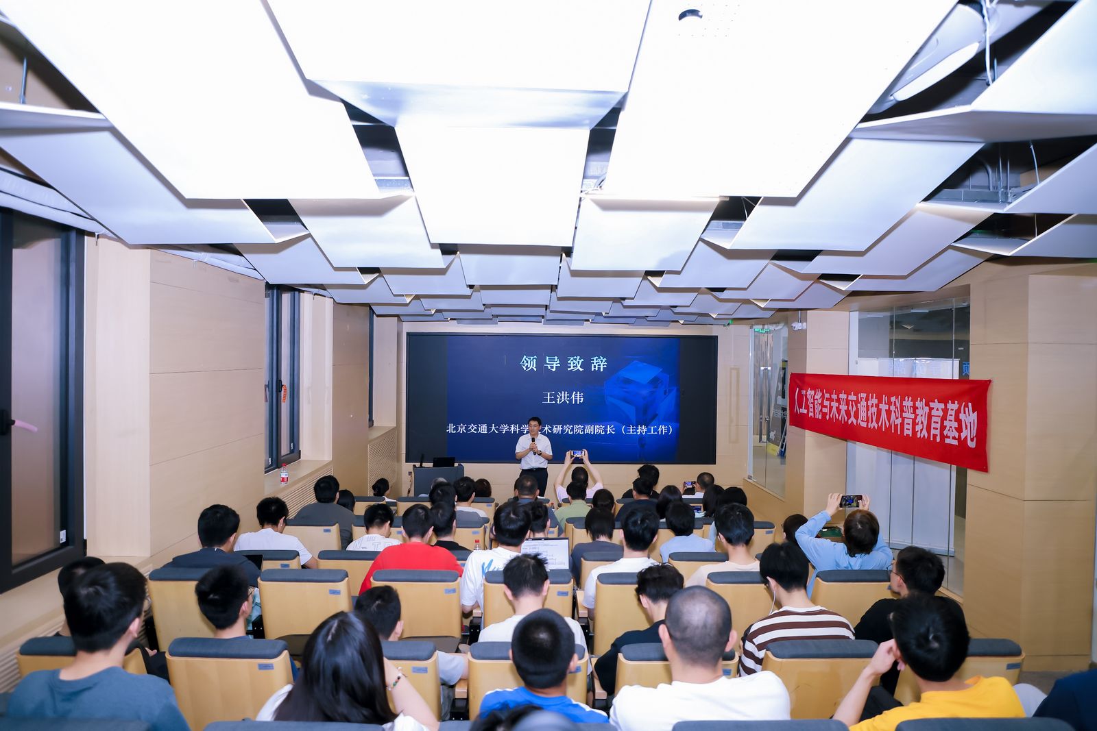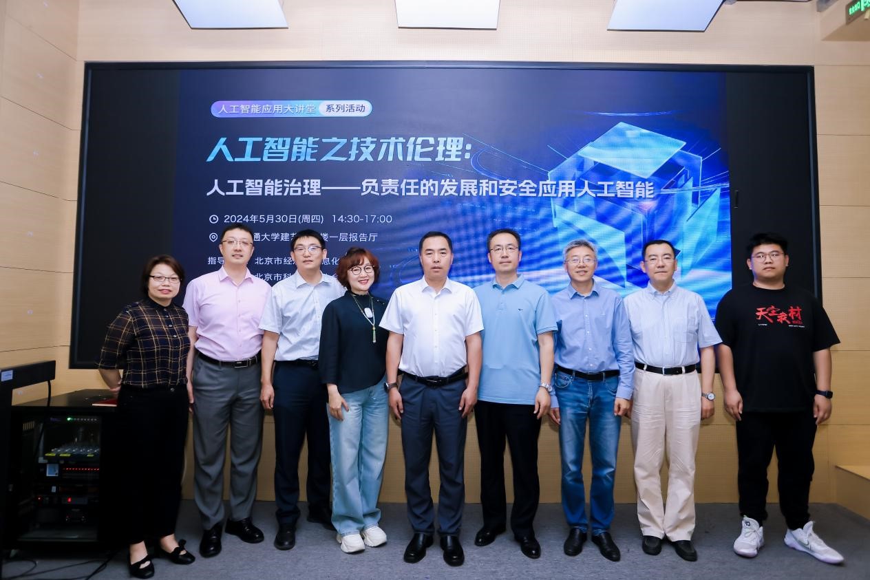 5月30日,在北京市经济和信息化局的指导下,北京市科学技术协会的支持下,由北京软件和信息服务业协会主办,北京交通大学人工智能与未来交通技术科普教育基地和中国软件行业协会智能应用分会共同协办的首期“人工智能应用大讲堂”系列活动暨开班仪式在北京交通大学成功召开。活动吸引了100余位来自高校、科研机构、人工智能相关企业的代表和热衷于人工智能学习的高校学生的现场踊跃参与,以及1102位收看线上直播的观众。北京交通大学科学技术研究院副院长王洪伟致辞,计算机科学与技术学院任爽副教授做《人工智能与数据安全技术》主题报告。